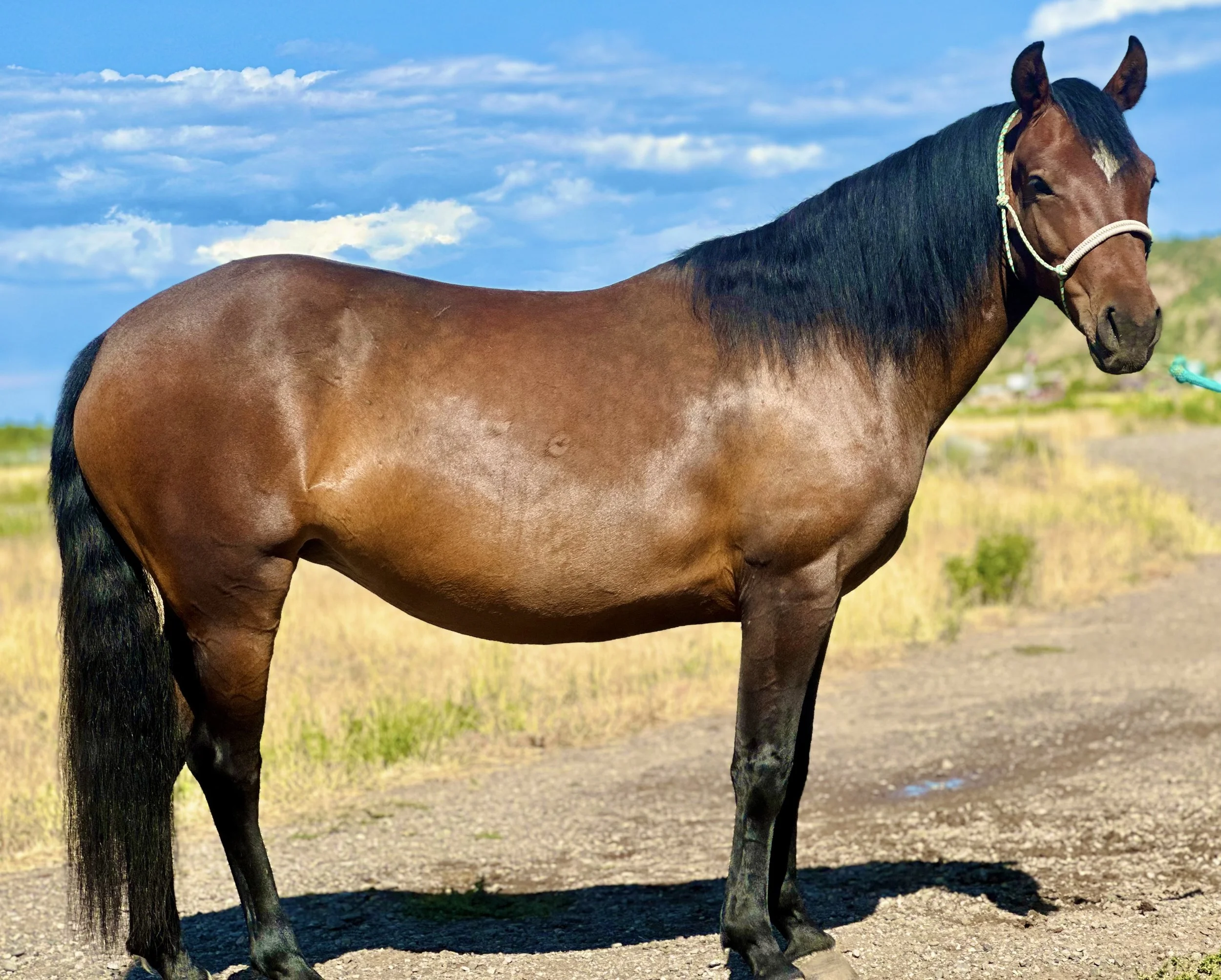 Second Chance Ranch adopted Pip in October 2024 along with her “sister,” Calliope. Pip is a 6-year-old Mustang from the Piceance/East Douglas HMA. After a year of training, Pip became the most wonderful trail partner and sweetest girl on the ground. Pip has been adopted by a beautiful family that hopes she can be a great mount for kiddos in the coming years. With Pip’s sweet disposition and eagerness to learn, the sky is the limit for the pint-sized powerhouse!