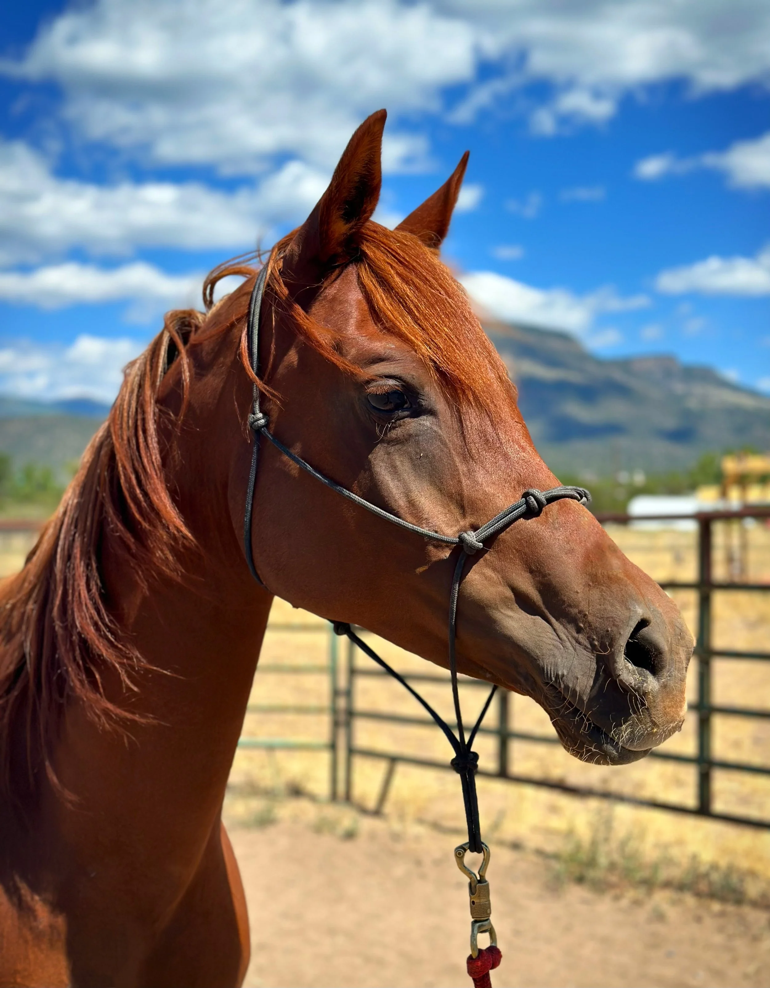 Wynston is a stunning five-year-old Arabian gelding. Wynston was part of a large herd-dump at a kill-pen in TX, where Second Chance Ranch also found Cora. Wynston was shockingly calm and trusting from day one, despite everything he had gone through in his young life. We learned after rescuing him that he actually came from a long lineage of Arabian champions. After a battle with strangles, gaining around 100 pounds, and getting started under saddle, we found Wynston the most amazing home in Crestone, CO. Wynston helps teach young children about horses and loves his job. Wyn’s mama loves taking him out on the trail and treating him like the prince he is.