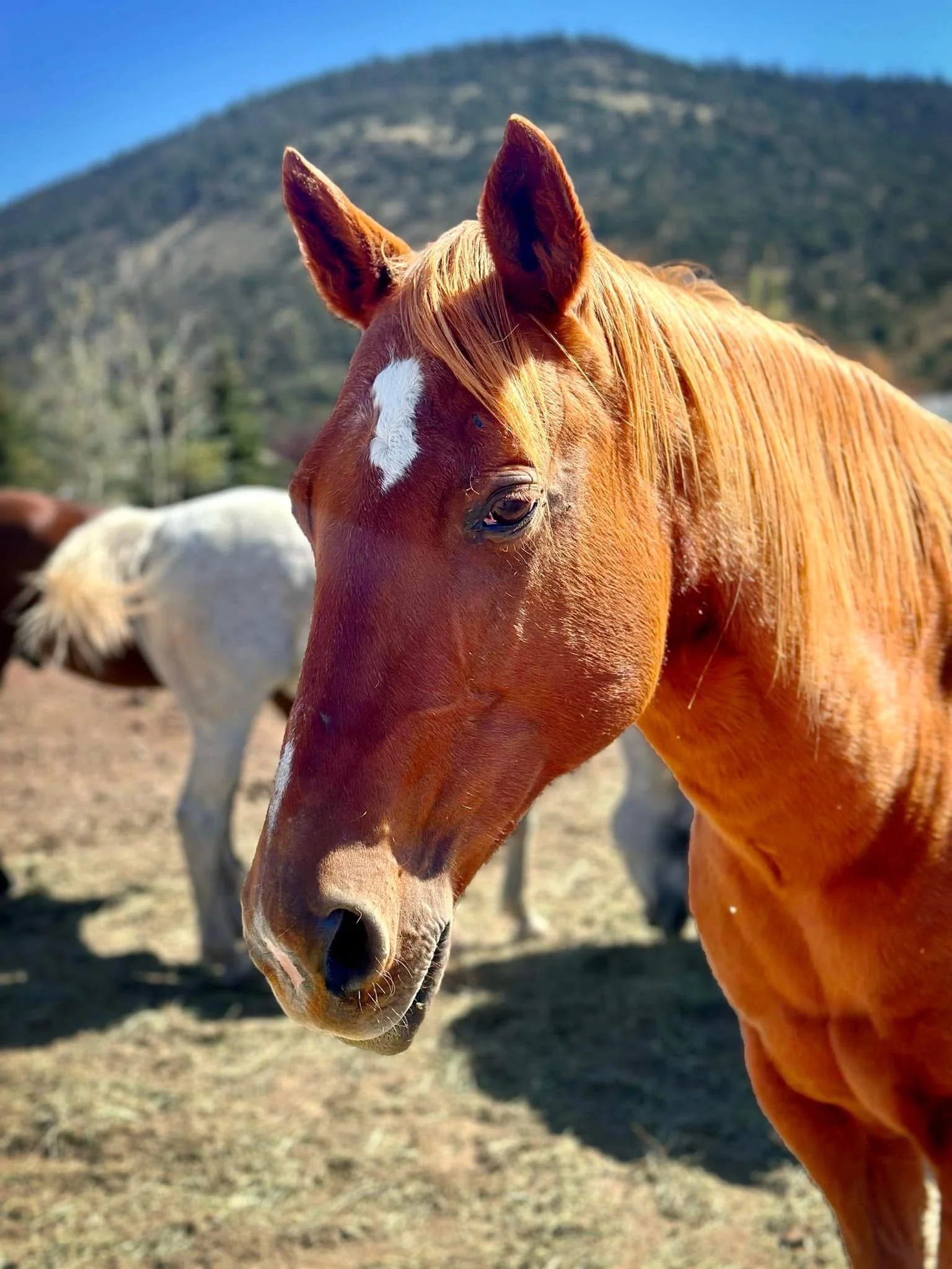 Wickedly smart, eccentric, and a bit dramatic, Bodhi is the theatre kid of our herd. Bo is a Mustang off the Virginia Range in Nevada. We adopted Bodhi in 2018 along with his brother Little Chief. As Bo and Chief spent the first 5-6 years of their life in the wild, both required lots of time and understanding through their transition into domestic life. Bodhi now excels in the jumper divisions at hunter/jumper shows and will be making his debut in the .90-meter divisions soon! Bodhi is also an amazing mountain horse and loves going on long trail-rides and pack trips. Bodhi is currently living his best life with his brother Little Chief, turned out on 300 acres of pasture just 30 minutes away from our main location in South Fork, CO.